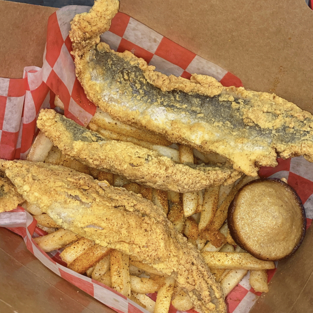 Serving fried chicken, fish, and shrimp with sides like mac and cheese, sweet potatoes, green beans, and our World Famous muffins.